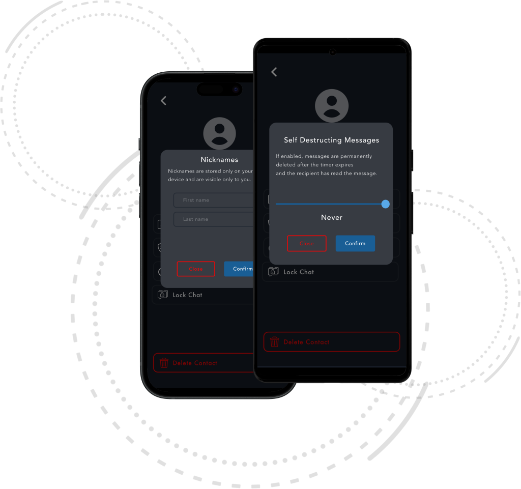 VaultChat lets you customize chat profiles with aliases, set self-destruct timers for messages, and lock chats with a password. After a set number of failed attempts, all chat content is wiped. Users can also delete contacts and view IDs, provided they’re not hidden, for added privacy and control.